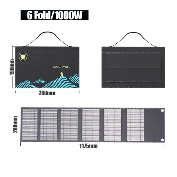 1000W Portable Solar Panel Bag USB+DC Output Solar Charger Powerful Outdoor Camping Power Supply for Mobile Phone Power Generator