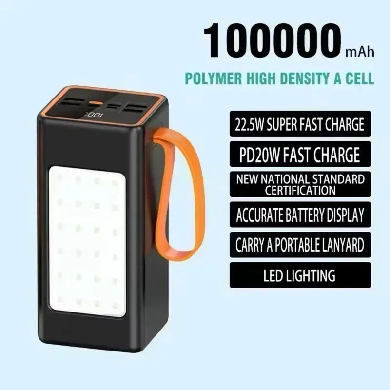 2024 New 100,000mAh 120W Fast Charging Portable Power Bank with Flashlight