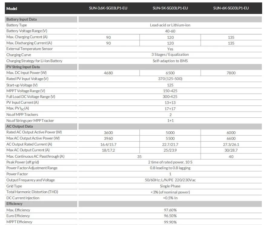 - Model Number: SUN-3.6K-SG03LP1-EU