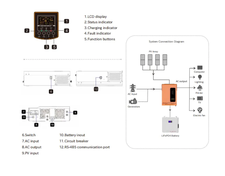 The JTH 5.5kW 48V High-Frequency Solar Inverter is a top-tier solution for solar energy systems, offering pure sine wave output, high conversion efficiency, and seamless lithium battery support. Designed for durability and ease of use, this inverter ensures stable power for homes, businesses, communication base stations, and remote locations.