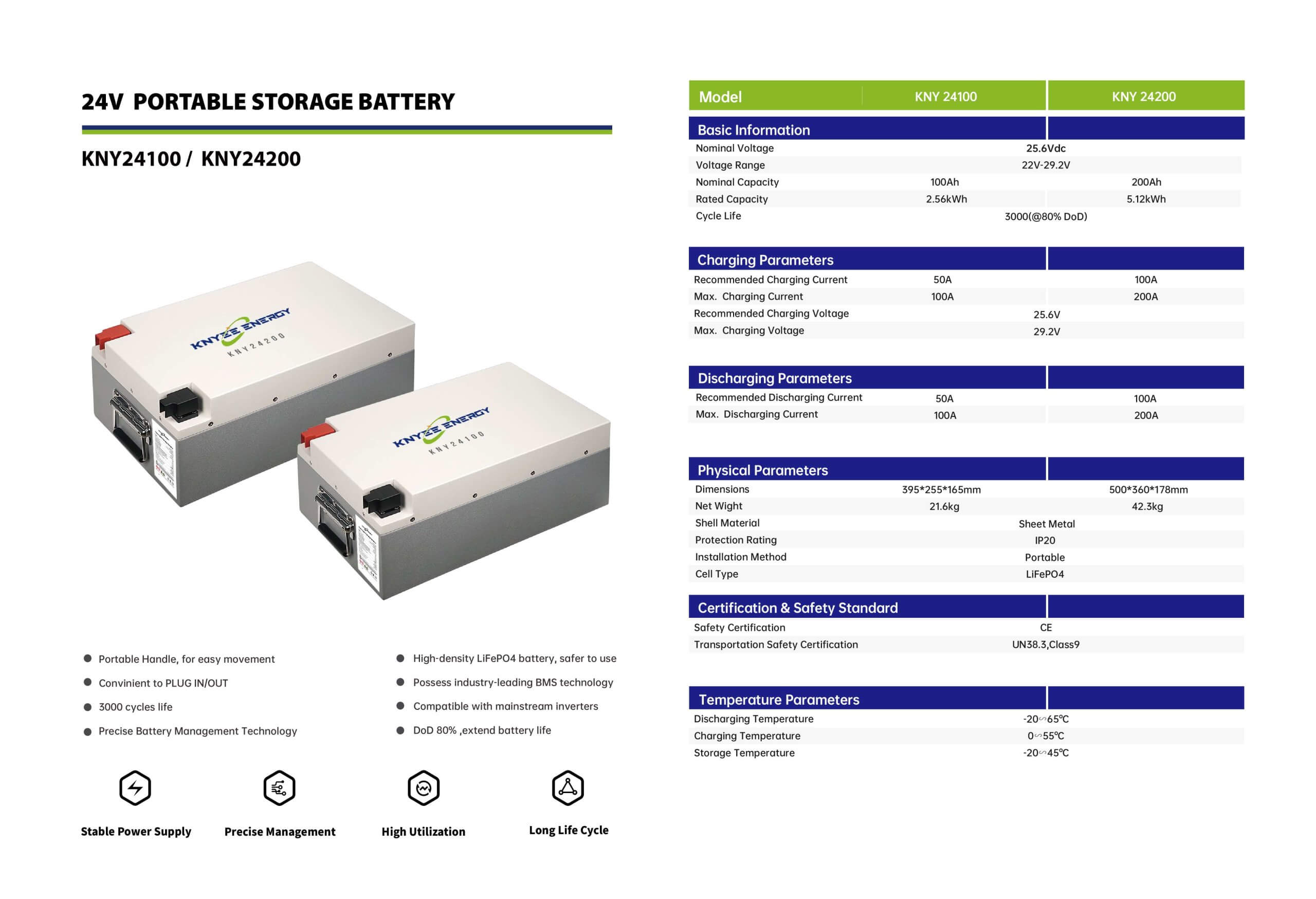 KNY 24100 25.6V 100Ah Lithium Battery – 2.56kWh Capacity