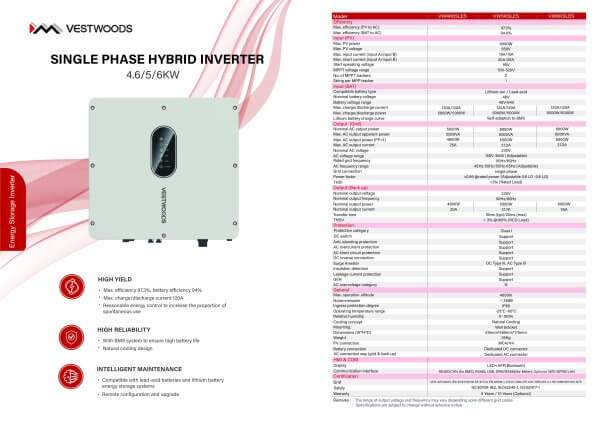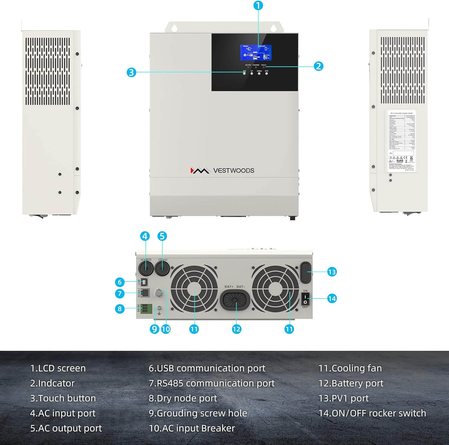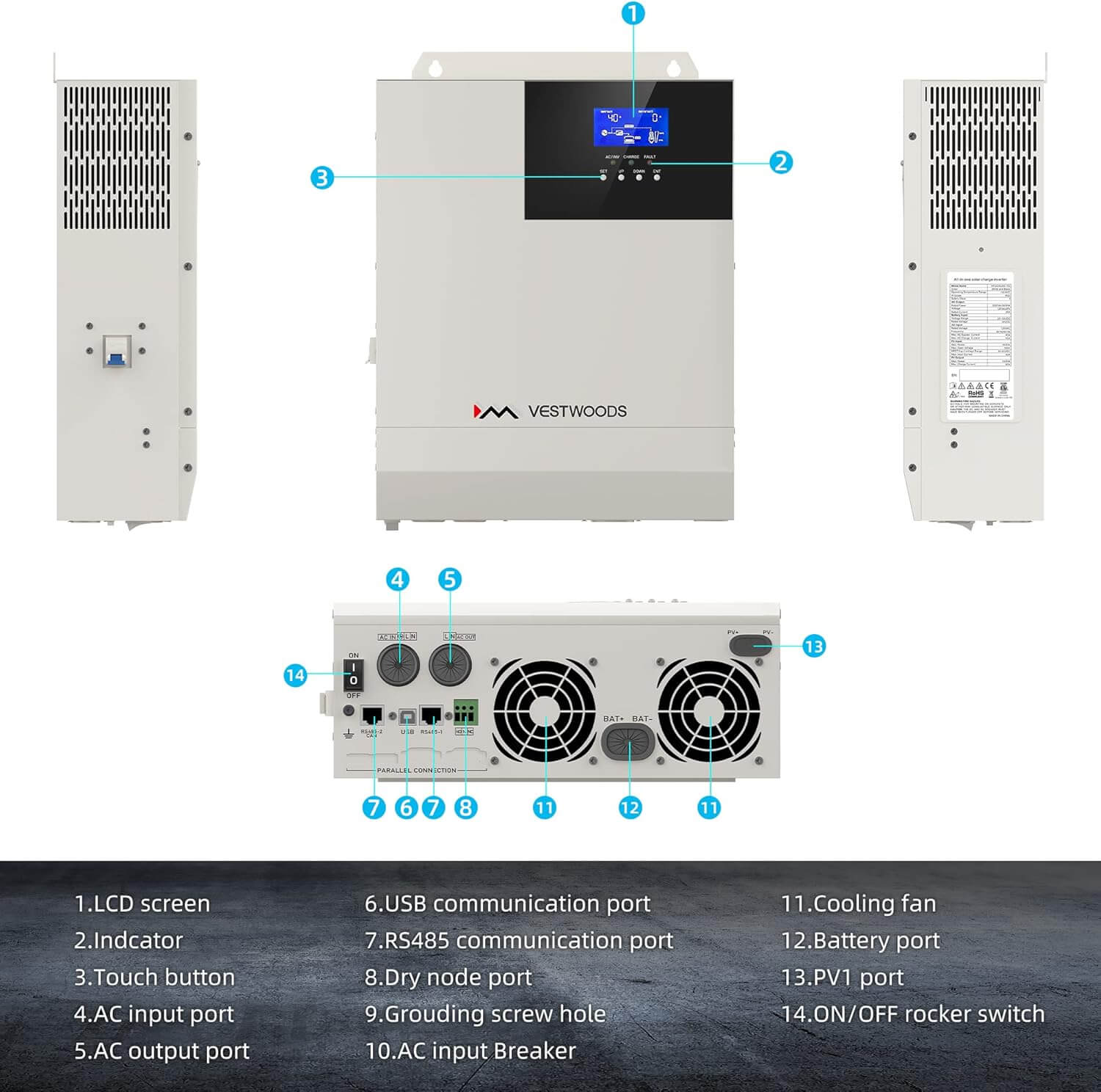 ☀️ Power your home or business with the reliable Vestwoods Solar Inverter 6KL1/VW6KSLES 48V, 6kVA Solar Power System!